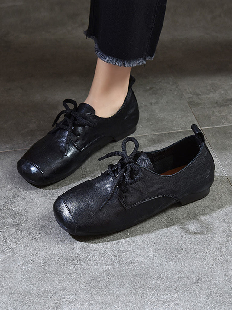 Scarpe da donna vintage in vera pelle con punta quadrata e tacco basso