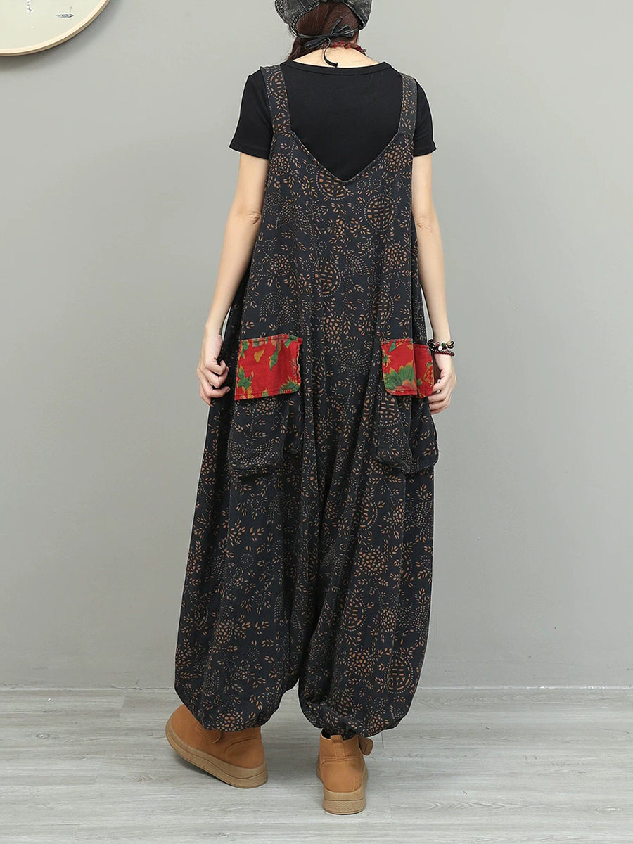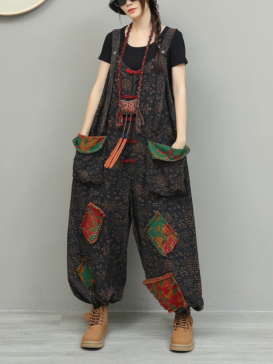 Tuta intera da donna vintage in cotone e lino con patchwork