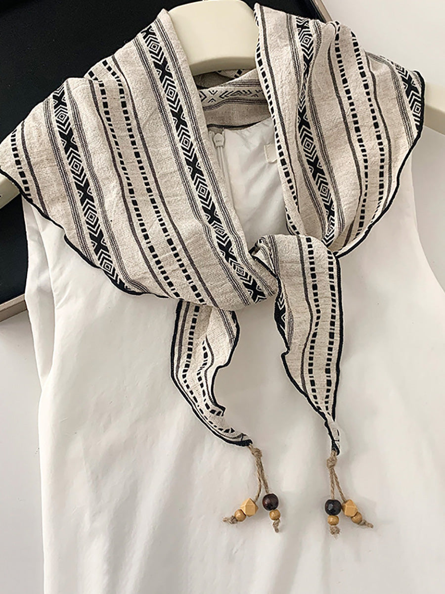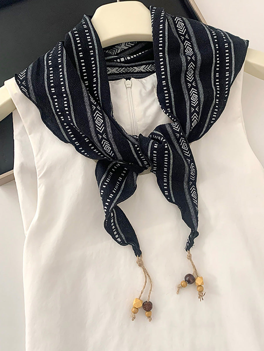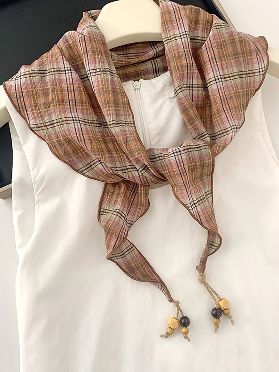Sciarpa triangolare da donna vintage a quadri con perline e nappe.