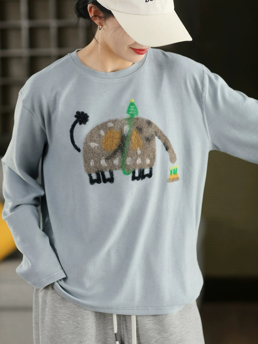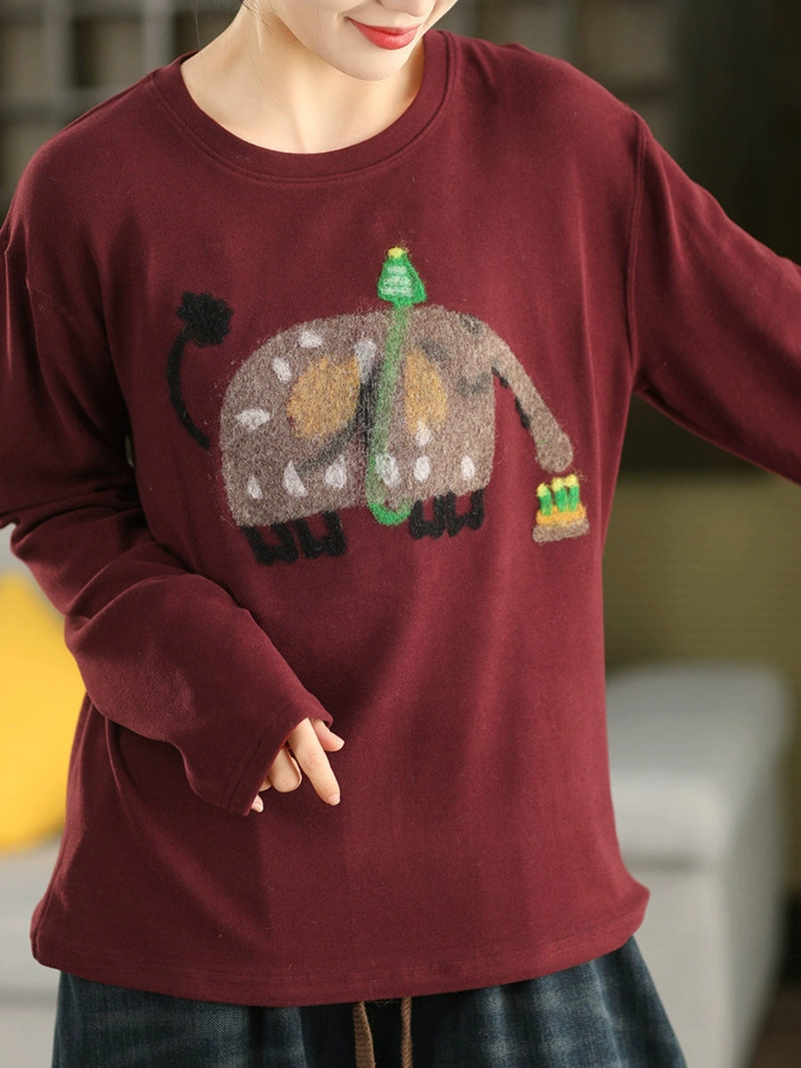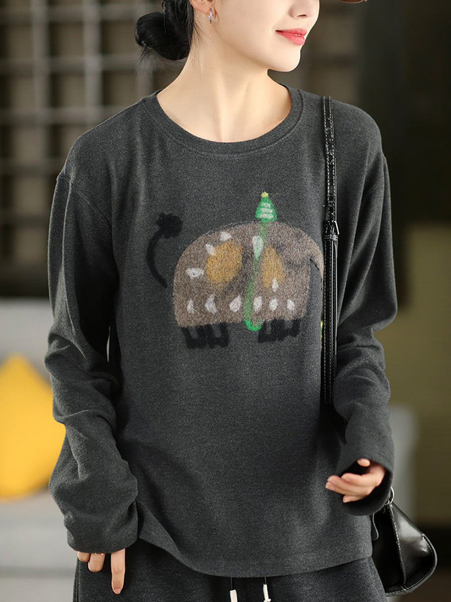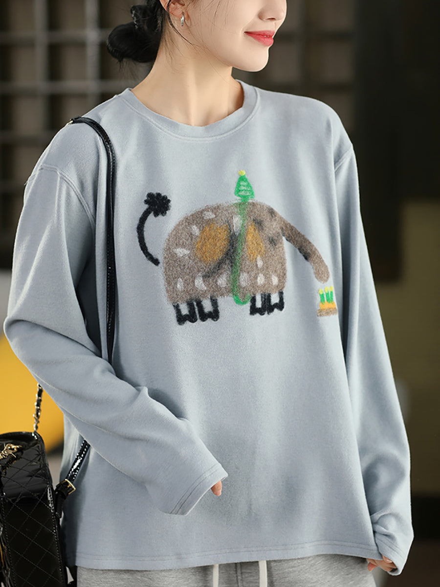 Blusa invernale da donna con scollo a V e stampa di elefanti