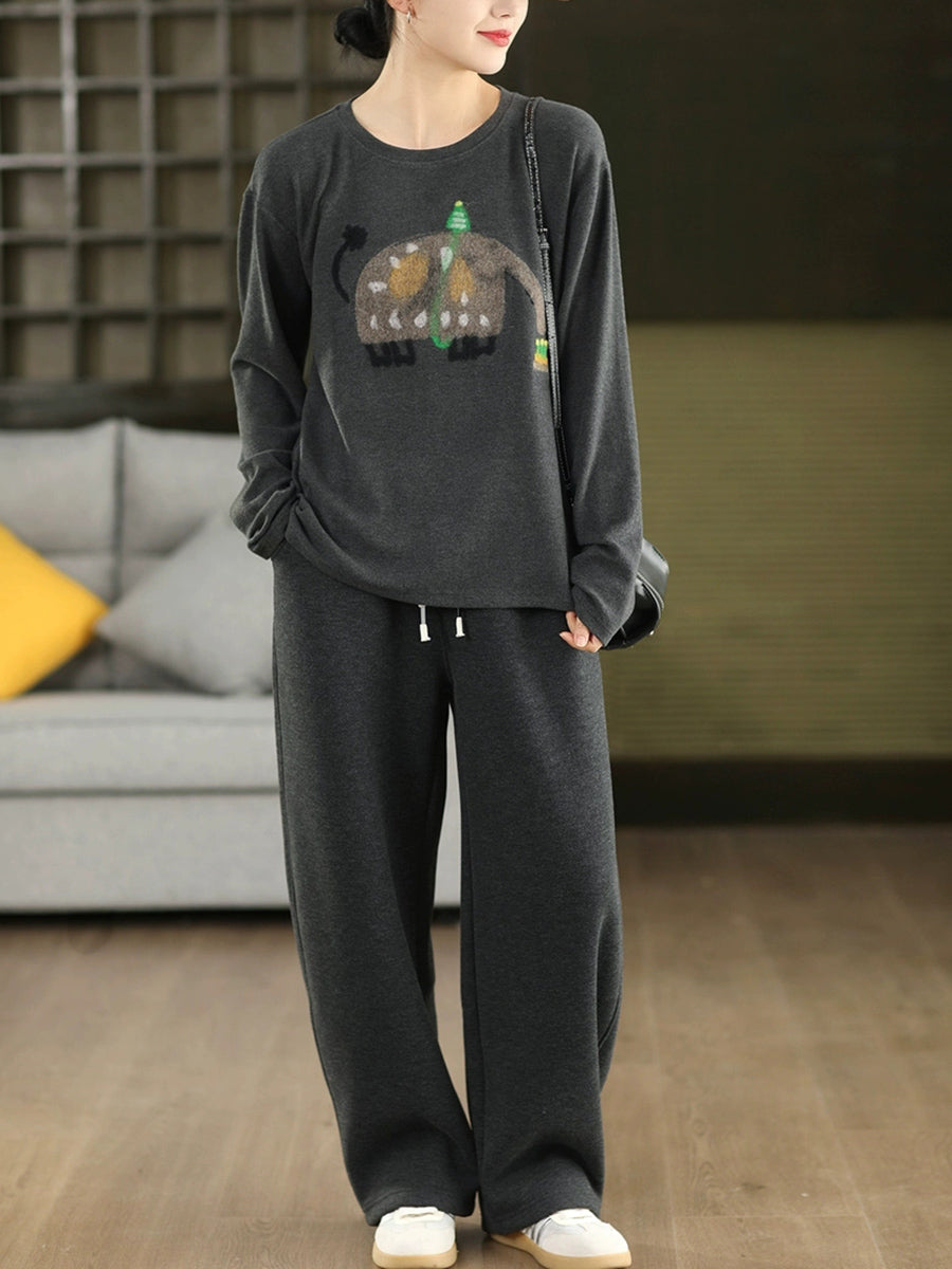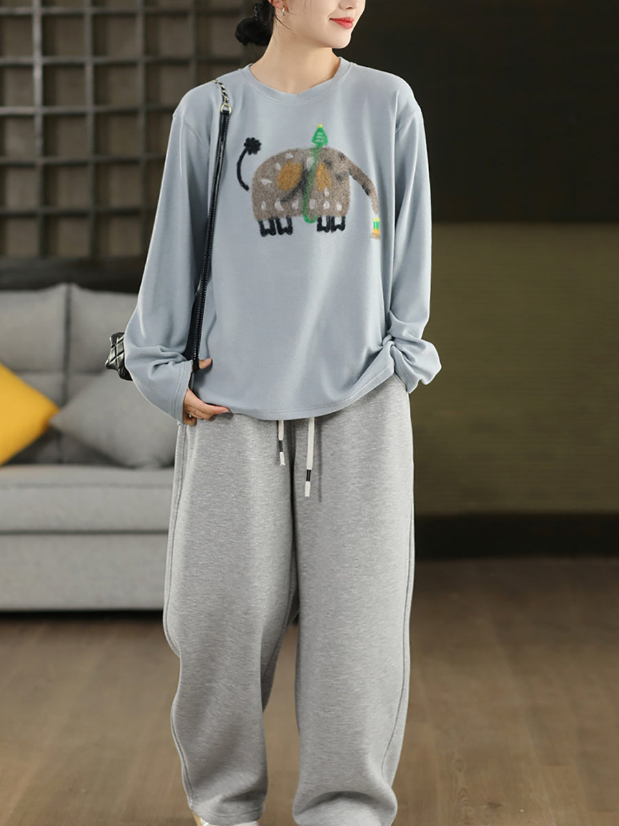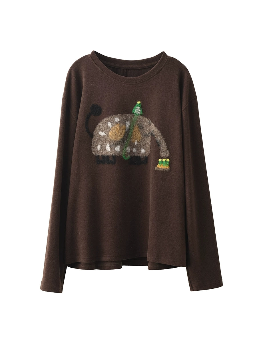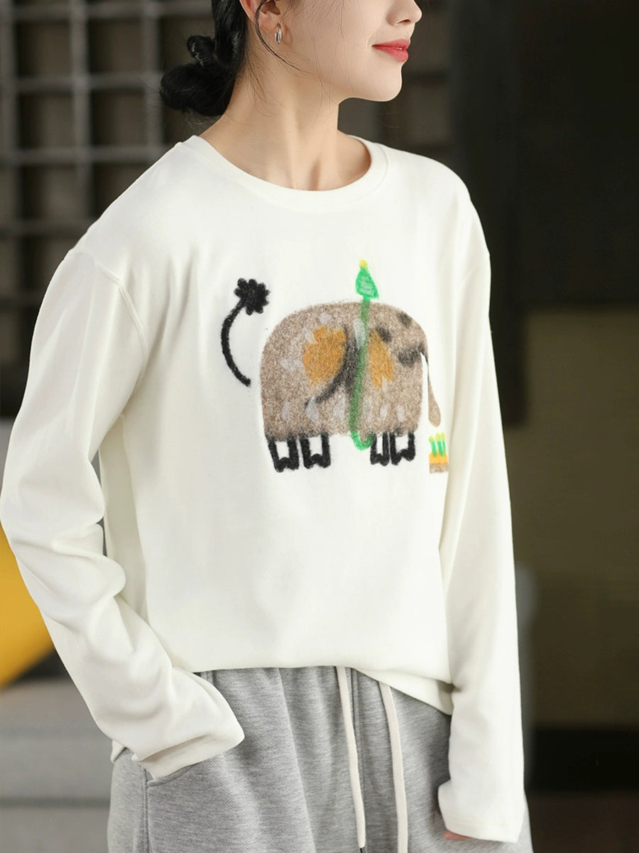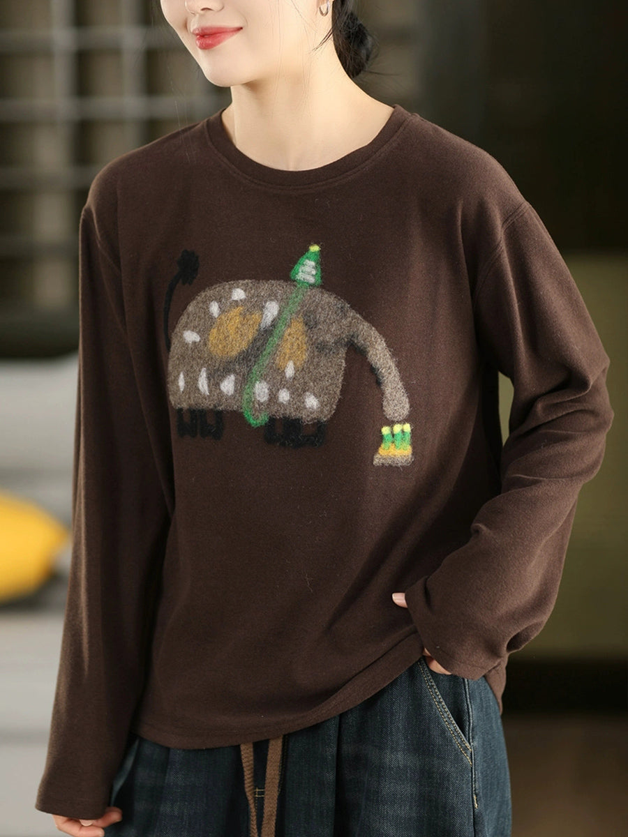 Blusa invernale da donna con scollo a V e stampa di elefanti