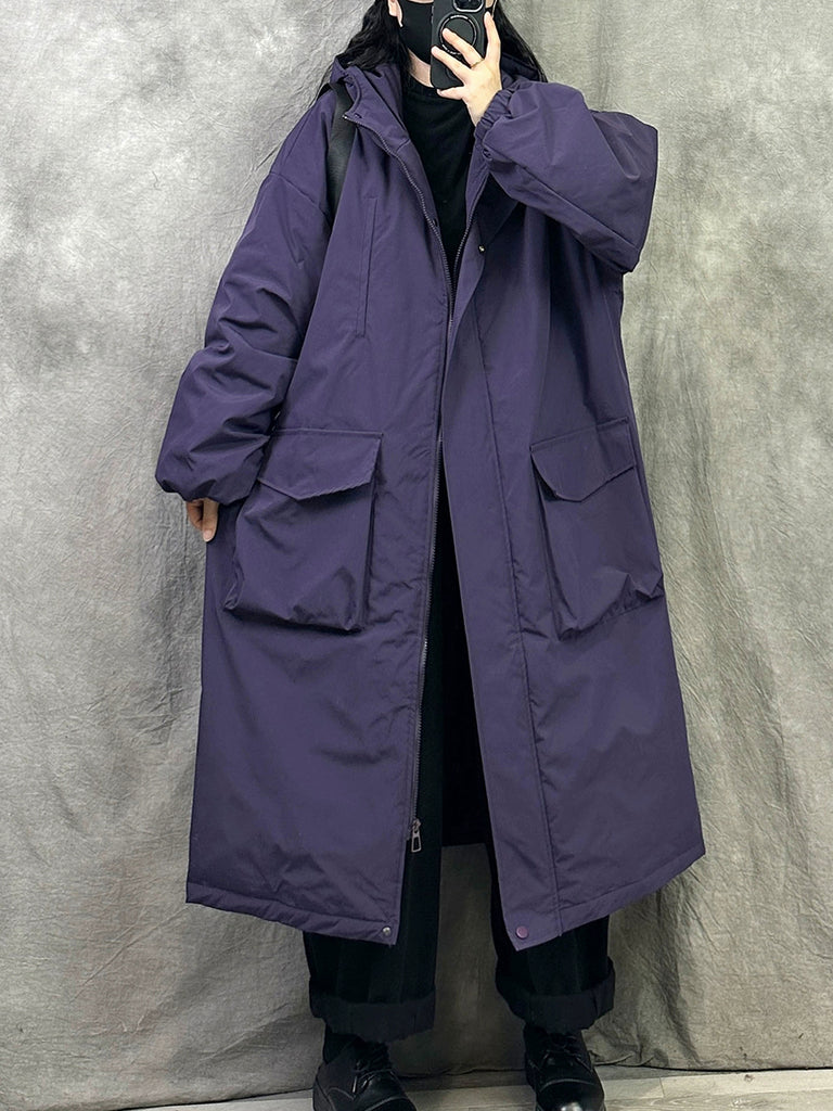 Cappotto imbottito con cappuccio casual invernale da donna, colore puro