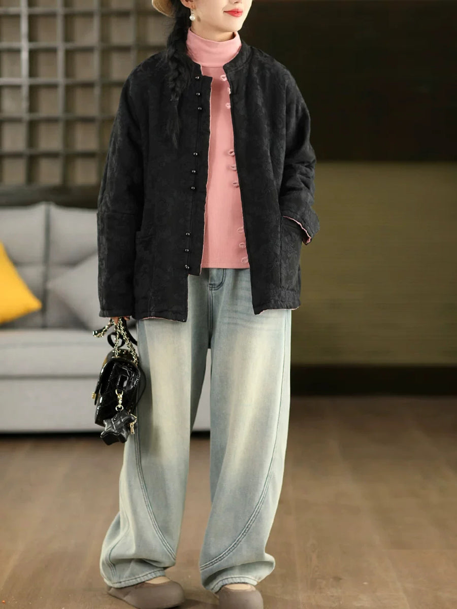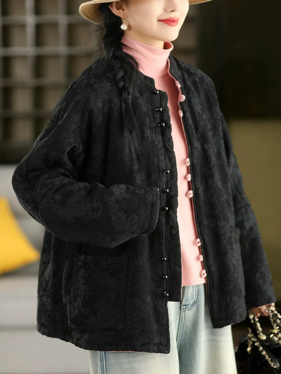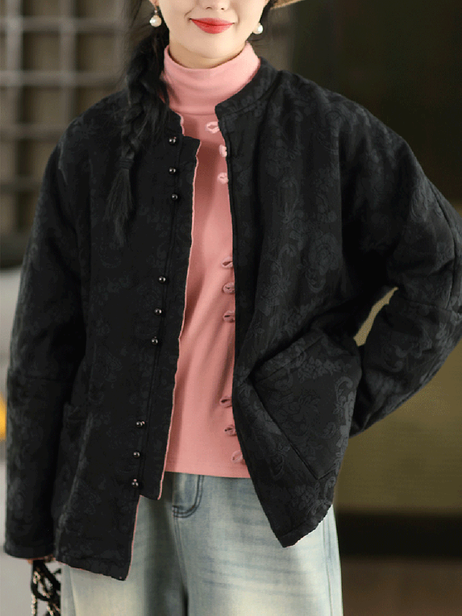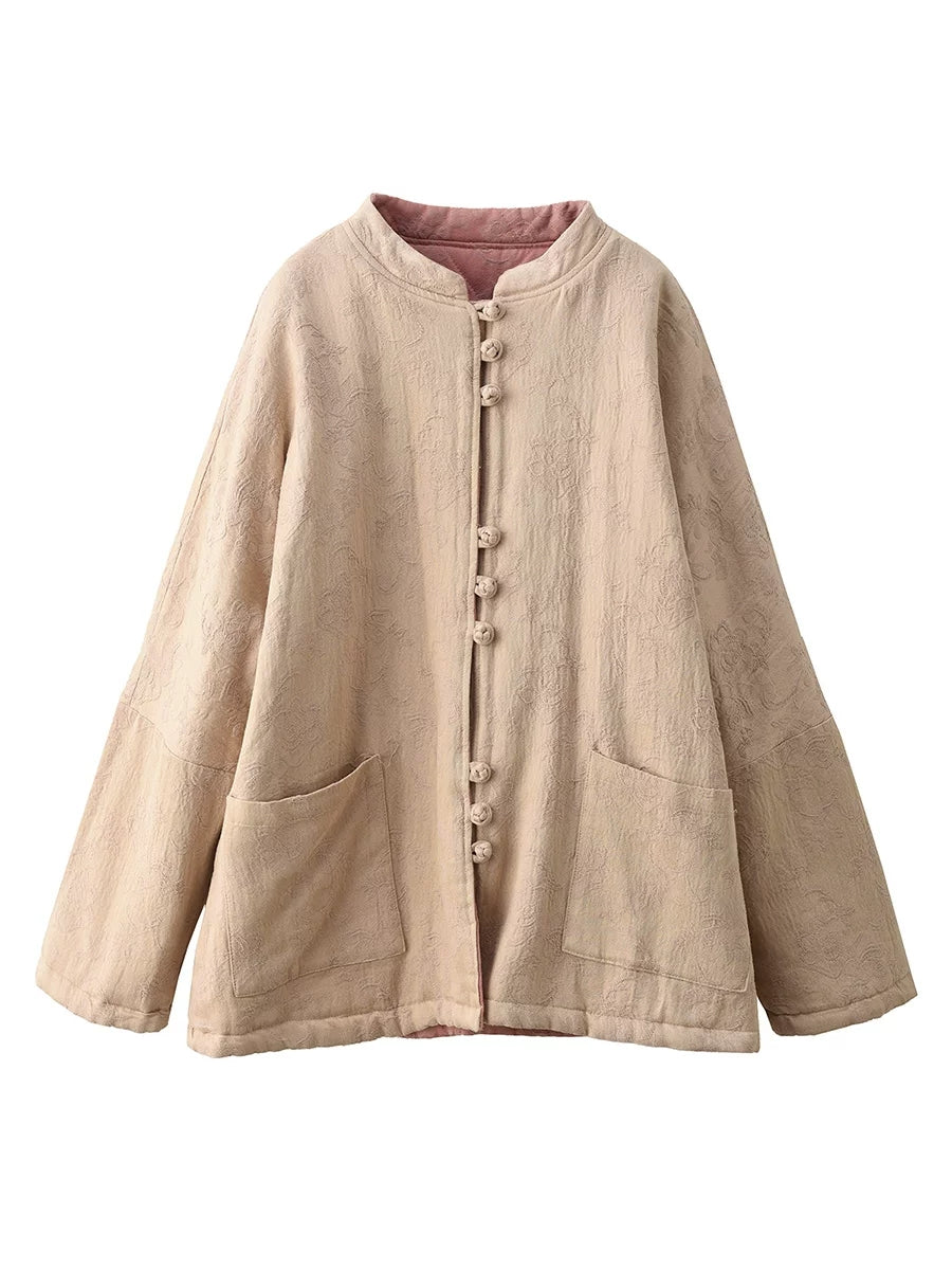 Cappotto invernale etnico da donna in cotone da indossare su entrambi i lati, colore puro