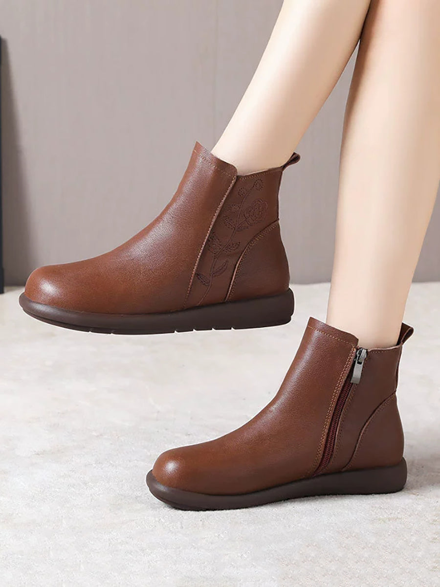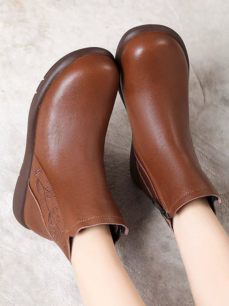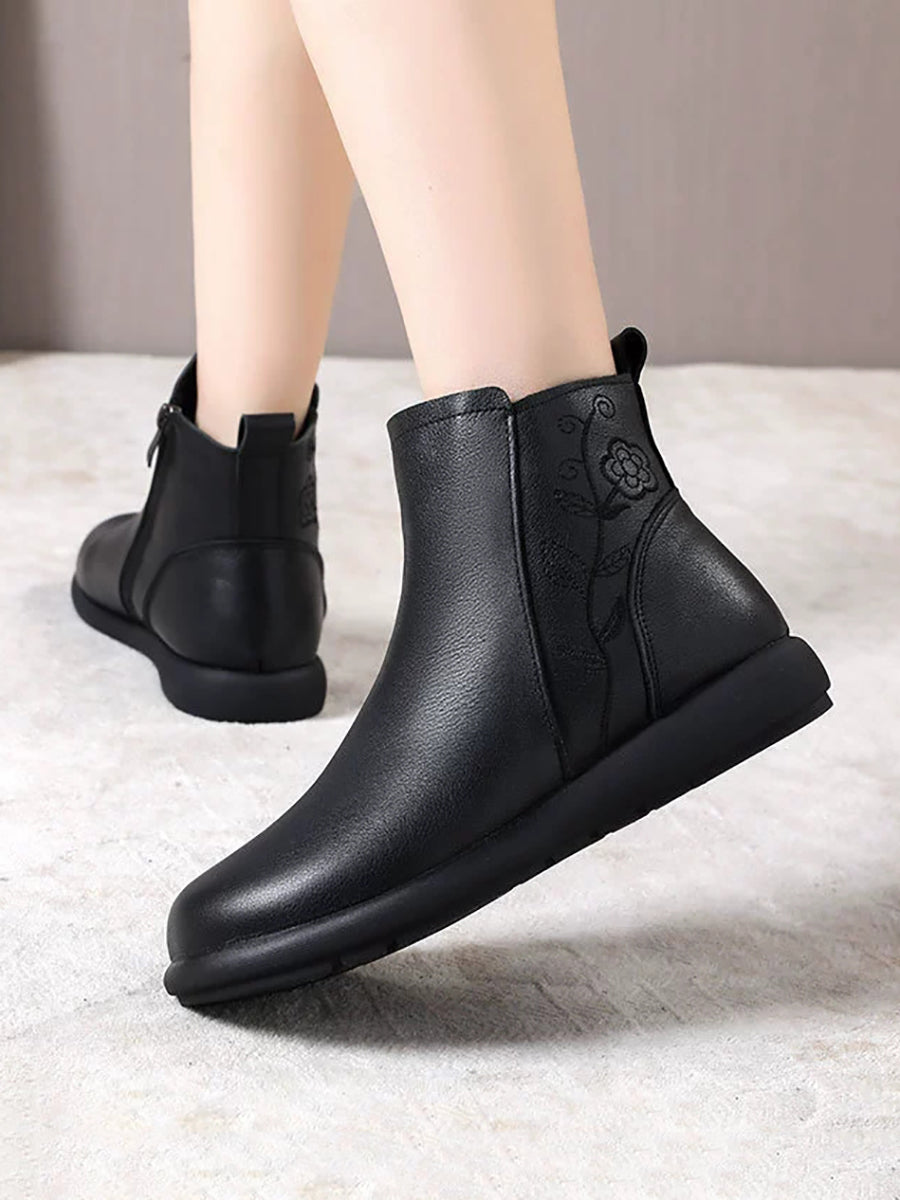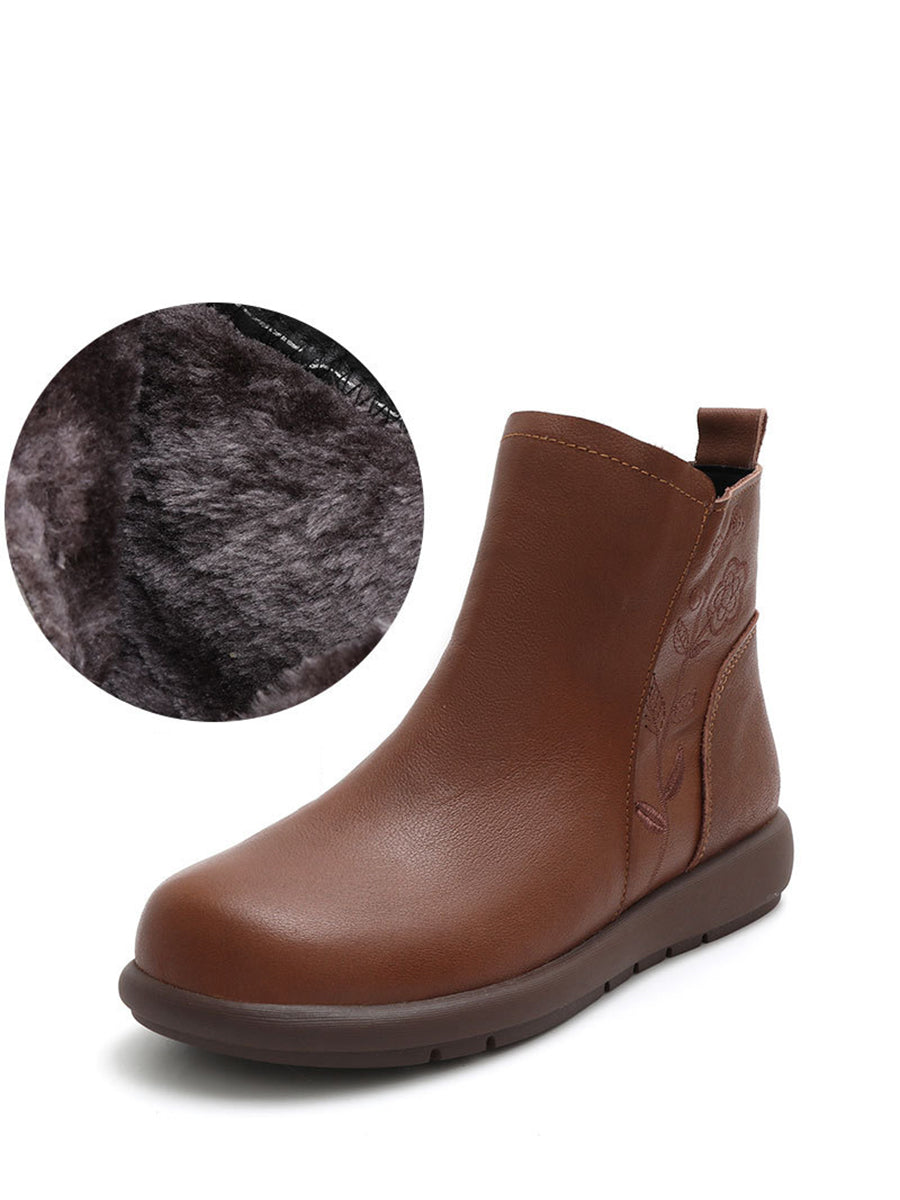 Stivali invernali da donna in vera pelle con stampa floreale