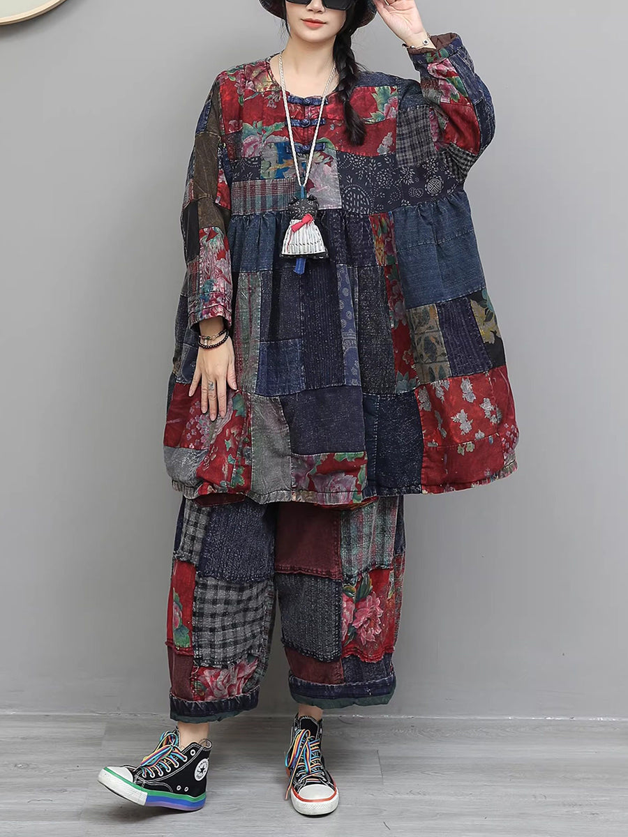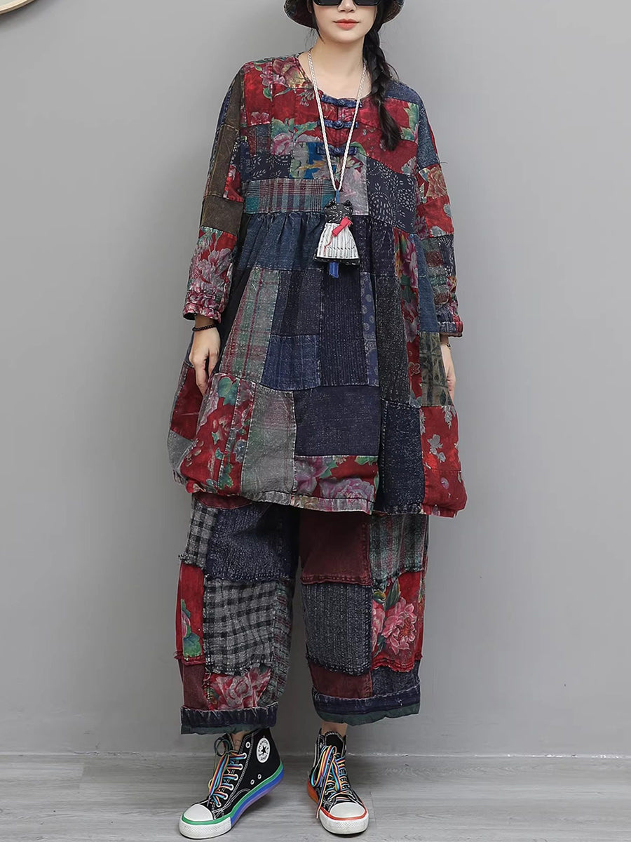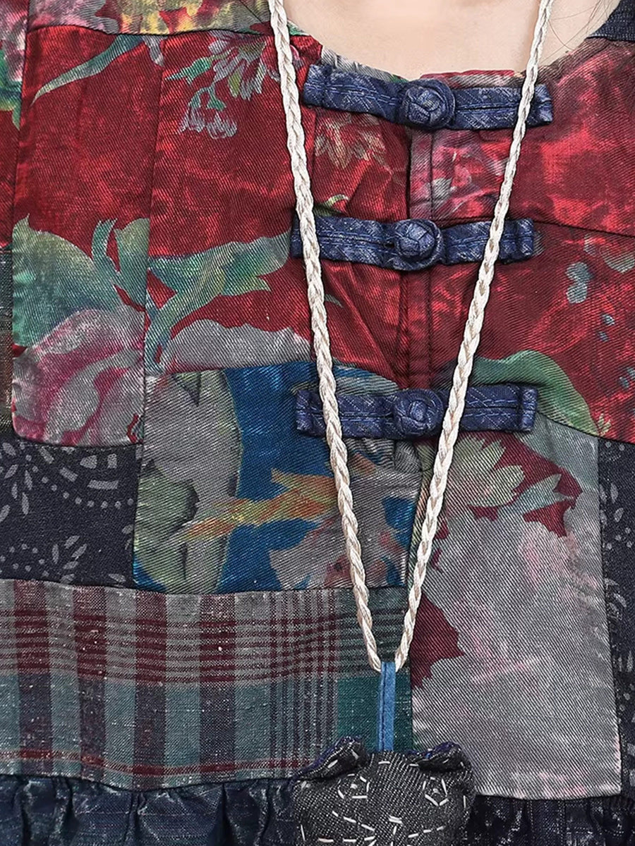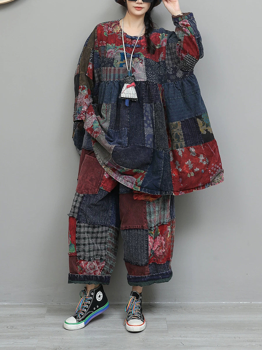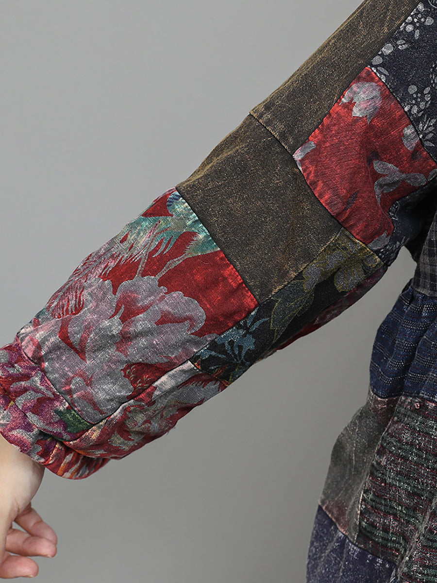 Tute imbottite invernali da donna con scollo a V e toppe retrò