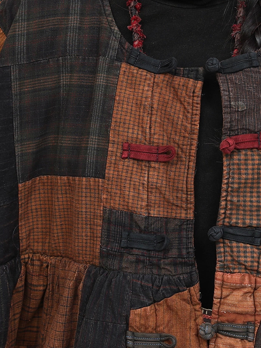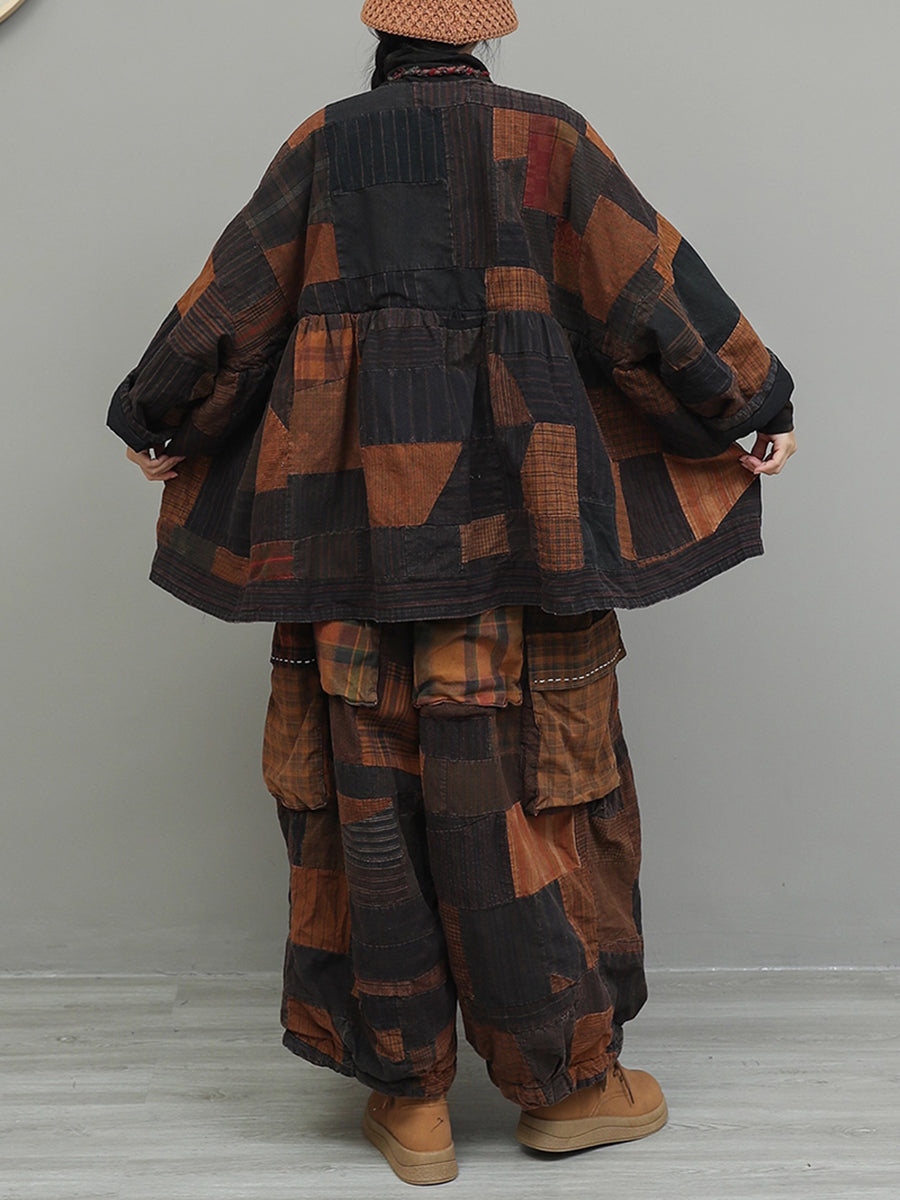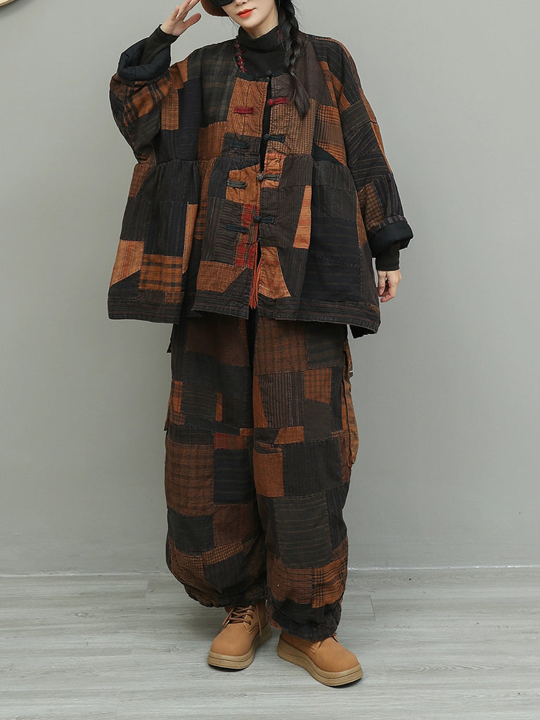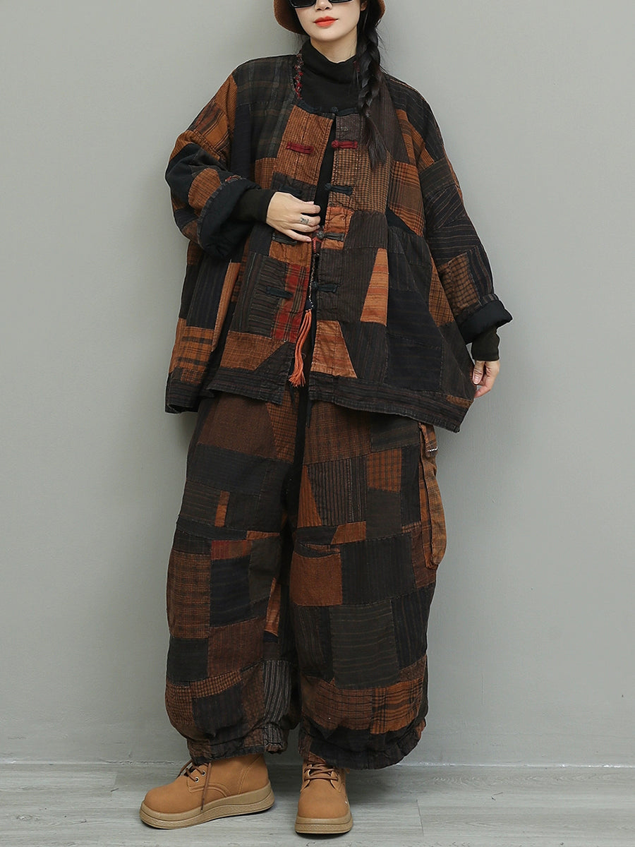 Tute imbottite invernali da donna con scollo a V e patchwork retrò