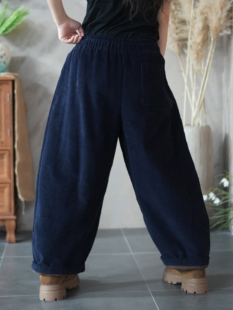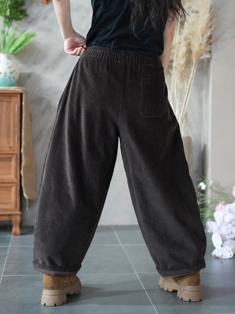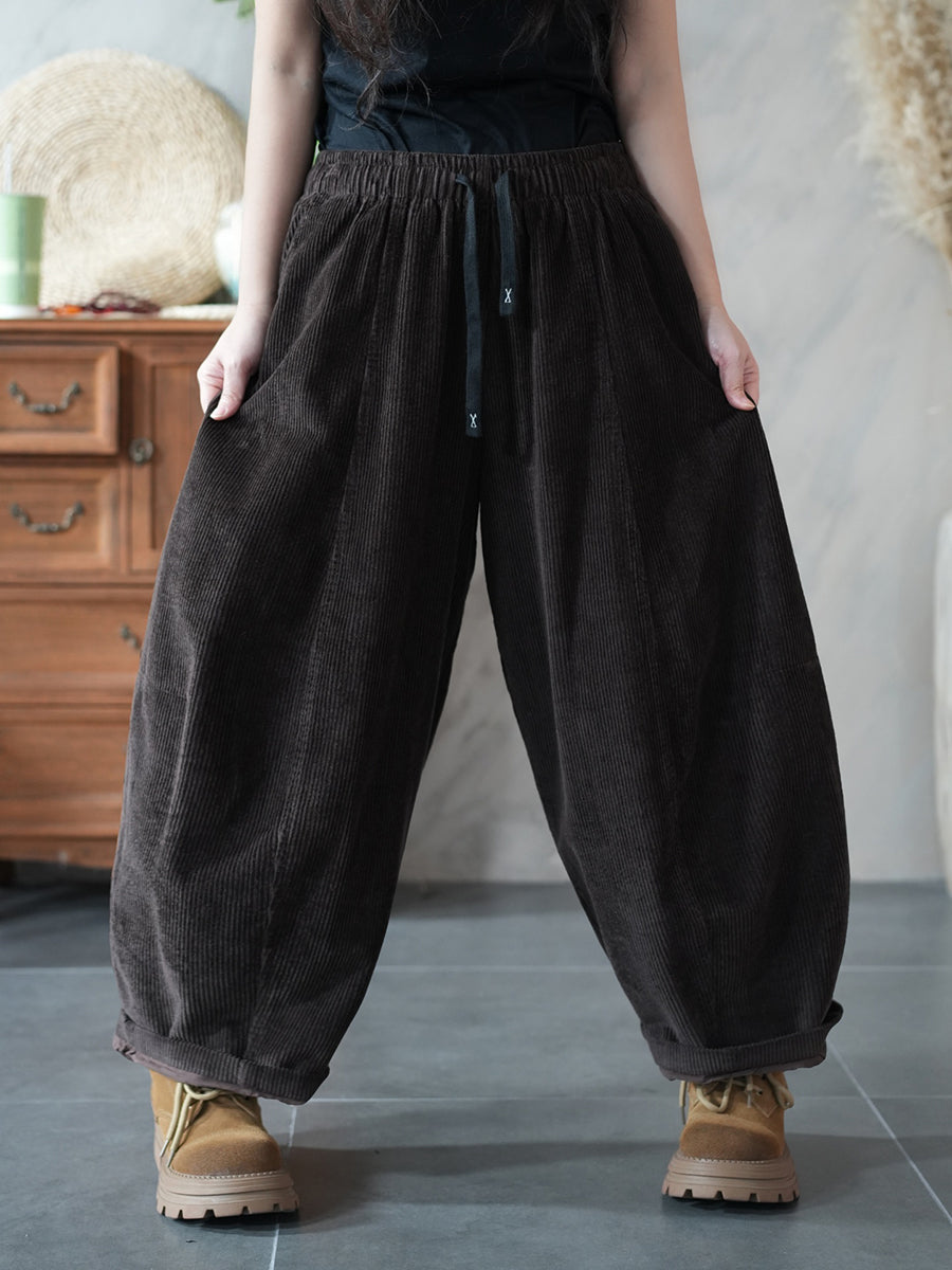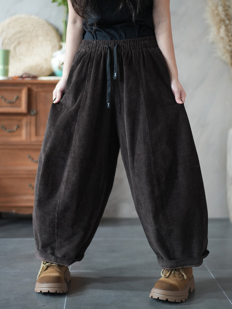 Pantaloni harem in velluto a coste color puro retrò invernali da donna