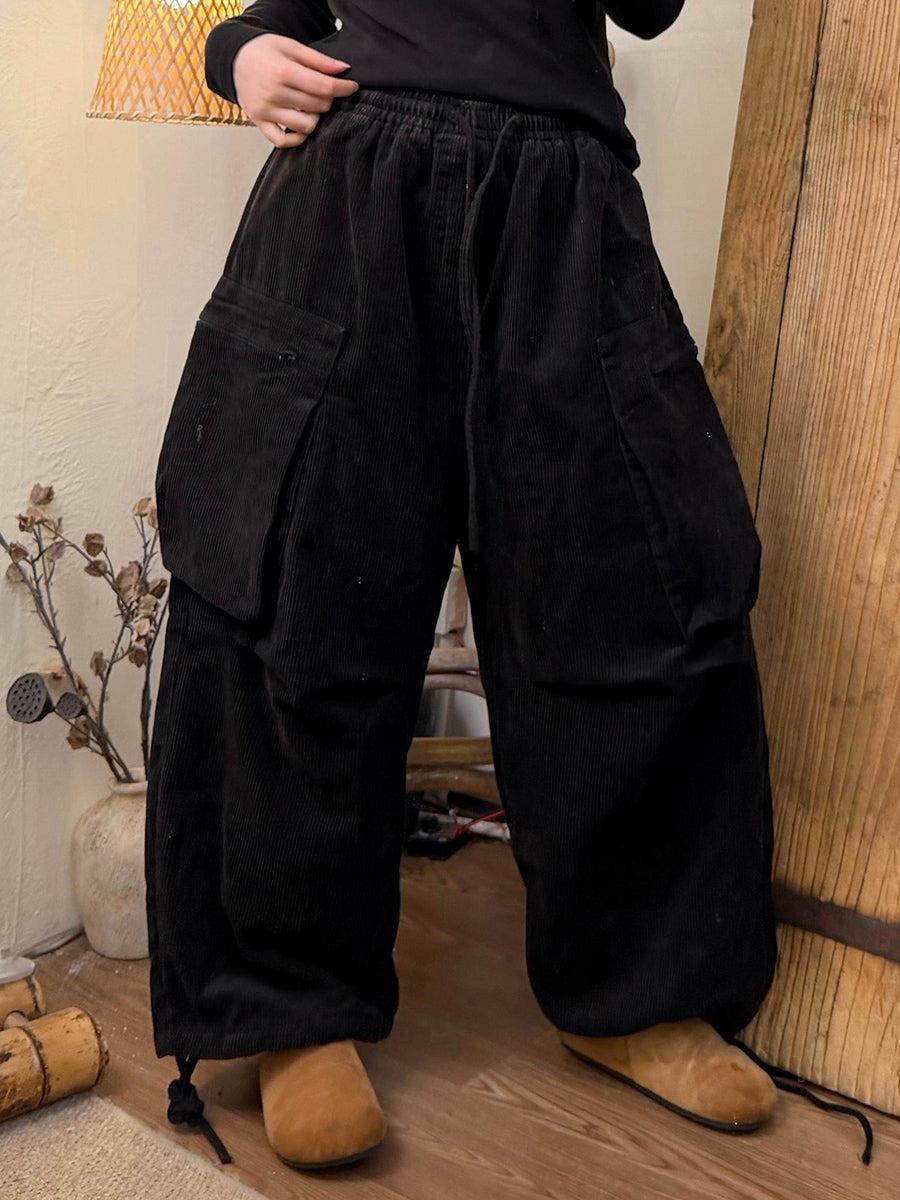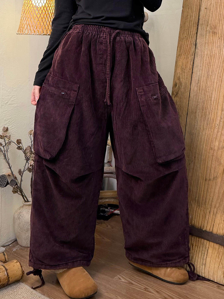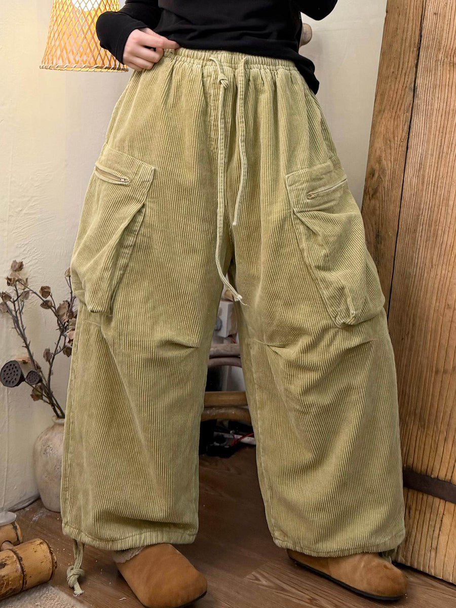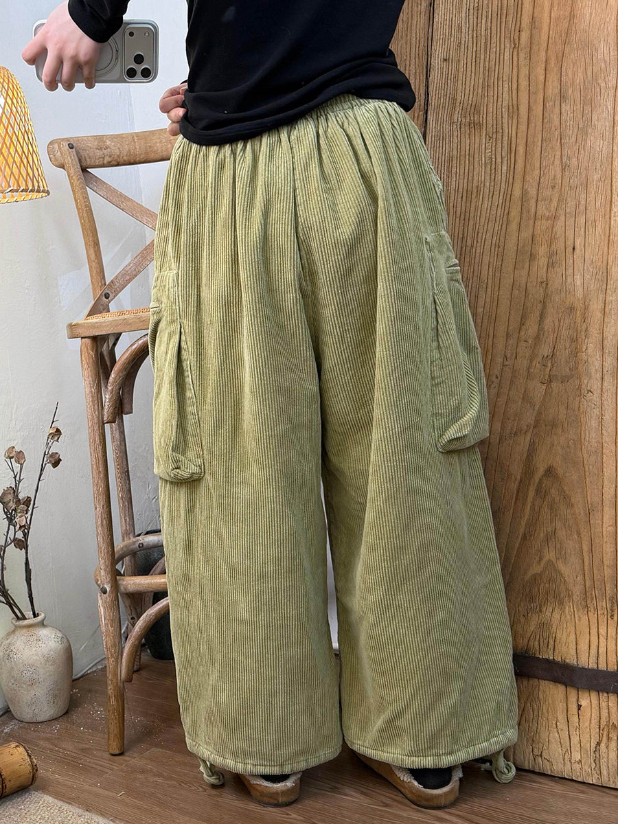 Pantaloni a gamba larga in velluto a coste color puro retrò invernale da donna