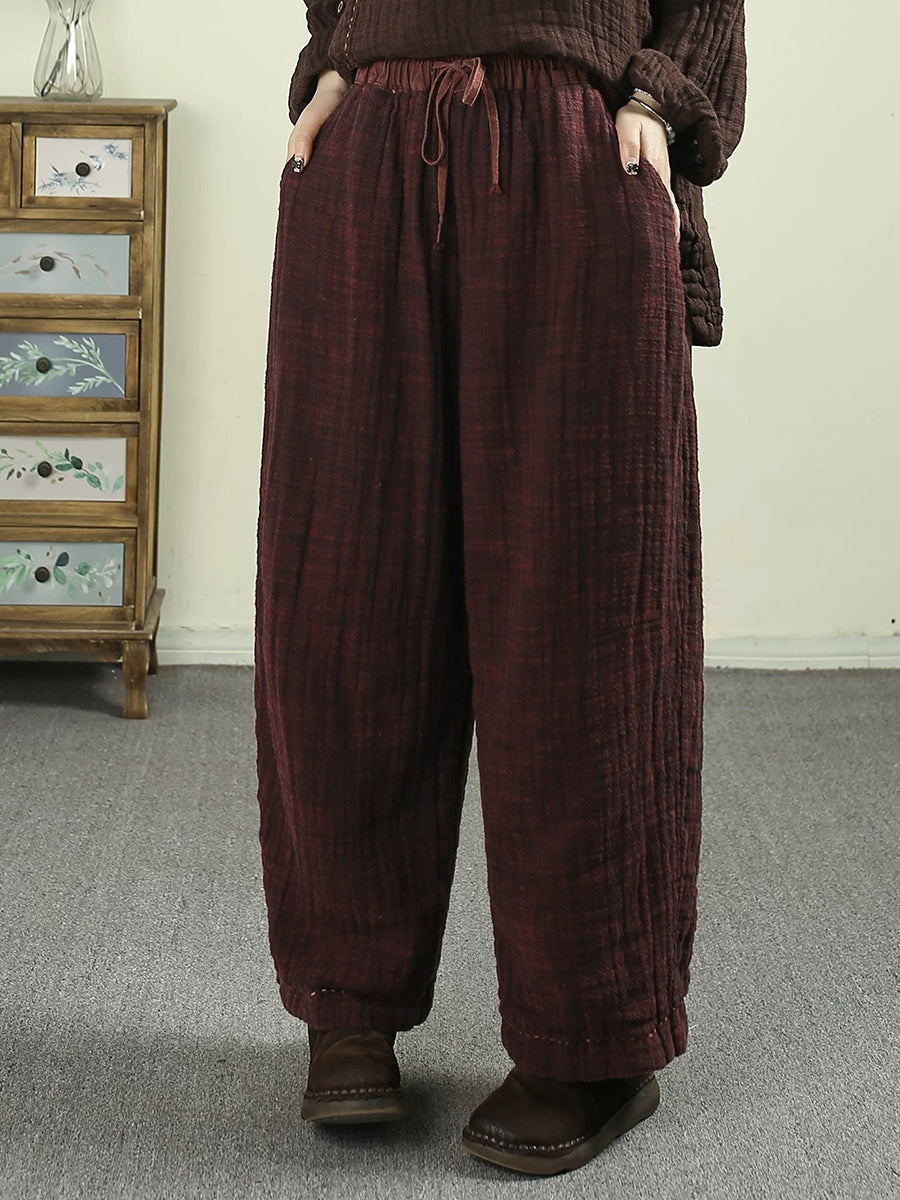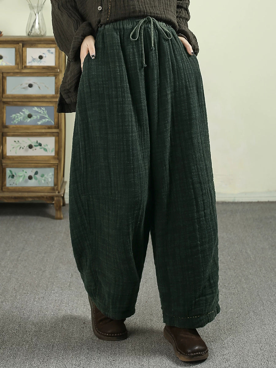 Pantaloni harem imbottiti invernali retrò da donna, di colore puro